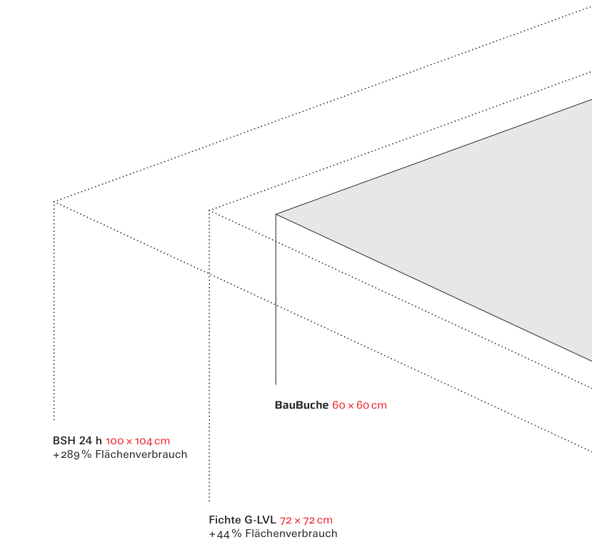 Eine Übersicht der wichtigsten Materialkennwerte (BSH 24h – Fichte G-LVL – BauBuche) zeigt, wie sich der neue Werkstoff im Leistungsbereich positioniert: G_LVL_Übersicht_Materialkennwerte