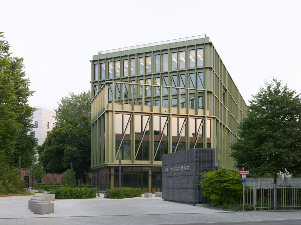 Im Münchner Werksviertel entstand mit dem sechsgeschossigen Bürogebäude i8 ein Holz-Hybridbau, bei dem das Wohlbefinden der Mitarbeitenden im Mittelpunkt stand. Die tragende Struktur setzt auf hochtragfähige BauBuche-Stützen und -Träger, die schlanke Querschnitte und offene Bürostrukturen ermöglichen. Geschossdecken aus Holz-Beton-Verbund, ein großzügiges Atrium und zahlreiche Holz-Holz-Verbindungen schaffen ein harmonisches Raumklima und flexible Arbeitsbereiche. Architektonisch prägt Holz in Kombination mit Glas und grünen Aluminiumfassaden das Gebäude und sorgt für eine helle, einladende Atmosphäre. Dank der Verwendung von BauBuche konnte das i8 effizient und wirtschaftlich realisiert werden – bei maximalem Flächengewinn und hoher Aufenthaltsqualität.