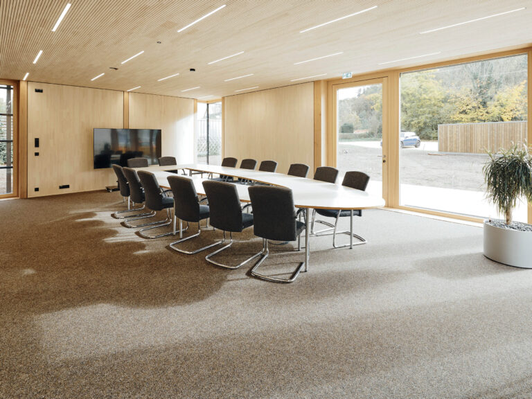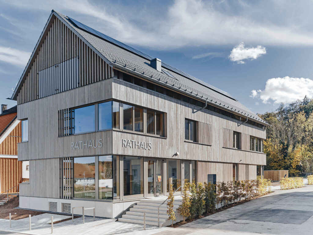 Mit dem neuen Rathaus in Bingen (Baden-Württemberg) zeigt eine kleine Gemeinde, wie moderner und nachhaltiger Holzbau im öffentlichen Bereich aussehen kann. Der zweigeschossige Neubau wurde als Holzskelettkonstruktion mit gebäudehohen BauBuche-Stützen realisiert und verbindet eine klare, dörflich geprägte Architektur mit hoher Tragfähigkeit und Materialeffizienz. Sichtbare BauBuche-Stützen und -Träger prägen den Innenraum und schaffen eine helle, freundliche Atmosphäre. Dank der hohen Festigkeit des Laubholzwerkstoffs konnten schlanke Querschnitte, unterzugsfreie Deckenbereiche und ein hoher Vorfertigungsgrad umgesetzt werden – ein gelungenes Beispiel für innovative Laubholznutzung im kommunalen Bau.